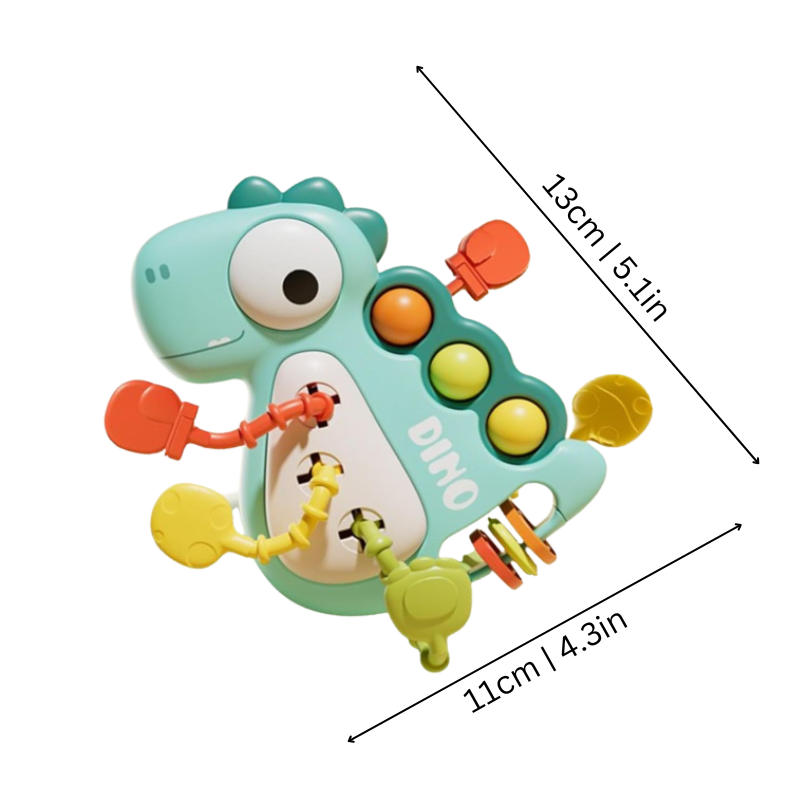 Der Greifsaurus beschäftigt kleine Hände und unterstützt spielerisch die sensorische Entwicklung, die Feinmotorik sowie die Griffkraft. Durch Zieh-, Dreh- und Beißspielmöglichkeiten lindert er Zahnungsschmerzen und bietet gleichzeitig unermüdlichen Spaß – in einem bunten, kinderfreundlichen Design.